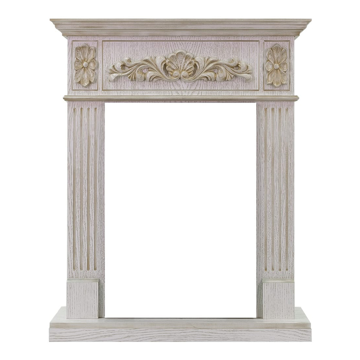 Пристенный фронтальный портал Marseille от компании Dimplex (для очага Viotta) может быть исполнен в двух цветовых решениях – белый дуб и темный орех, благодаря чему вы подберете наиболее оптимальный вариант для своего интерьера. Выглядит представленное каминное оформление действительно эффектно: оно украшено художественной резьбой, колоннами и позолотой, которые уравновешены благородной древесной цветовой гаммой.