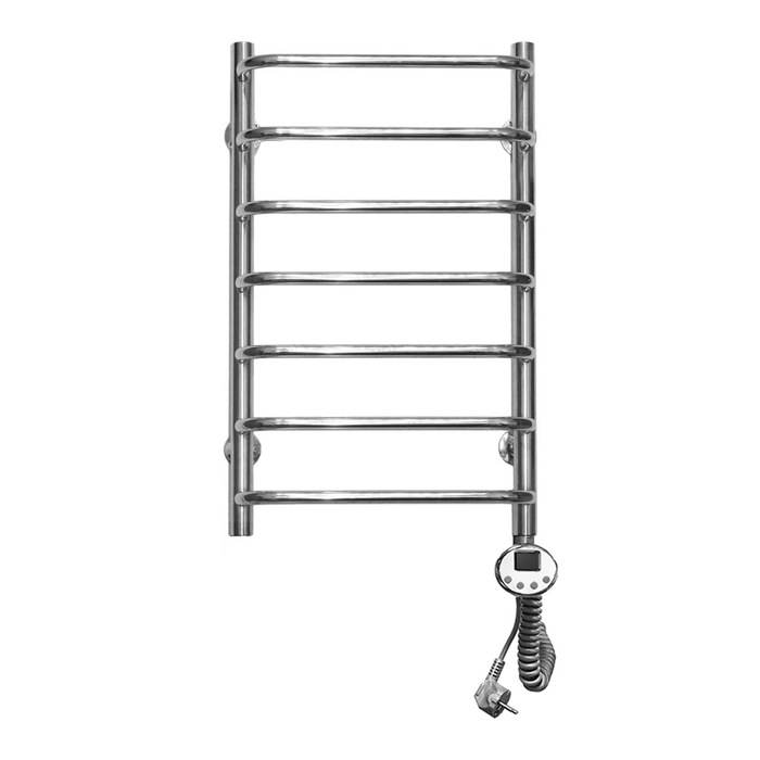 Полотенцесушитель Domoterm (Домотерм) Стефано П7 400*700 ER снабжен подключение к электросети с правой стороны. Аппарат хорошо выполняет задачу по высушиванию как помещения, так и предметов на его перекладинах.