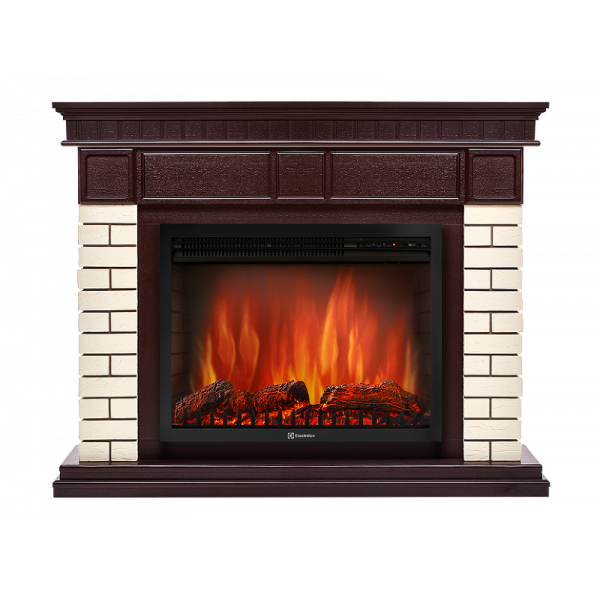 Electrolux Bricks 25U кирпич Бежевый/шпон Тёмный дуб – это красивый и самобытный угловой портал в комплекте с электрическим очагом модели EFP/P - 2520LS. Для производства камина используется экологически чистый материал, без посторонних запахов, а боковые стройные ряды в виде кирпичной кладки, придают камину элегантный и сдержанный облик, который подходит как для современного интерьера, так и для создания в помещении романтической обстановки. Данный портал прост в сборке, эксплуатации и обслуживании, очень быстро монтируется в любом помещении.