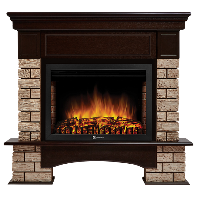 Каминокомплект (пристенный) Electrolux (Электролюкс) Forte Wood 25 камень коричневый, шпон темный дуб с очагом 27 дюймов (EFP/P – 2720RLS) - это оборудование, которое поставляется в полной комплектации, состоит из декоративного портала, выполненного из МДФ, с комбинированной отделкой из шпона и камня, а также очага, диагональ которого составляет 27 дюймов. Представленная модель будет не только идеальным украшением интерьера, но и дополнительным источником тепла.