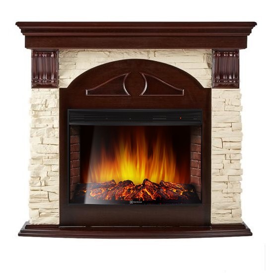 Каминокомплект Torre 30S камень слоновая кость, темный дуб с очагом 33 дюйма (EFP/P - 3320RLS) от компании Electrolux (Электролюкс) безопасен в использовании, может выступать в качестве отопительного источника тепла для комнаты.