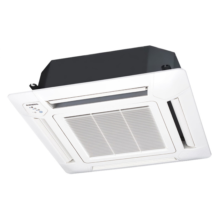 Кассетный блок General (Дженерал) AUHG12LVLB внутреннего размещения оснащен крепкими креплениями и соответствующей формой корпуса для установки в подвесной потолок. Помимо пульта ДУ можно обустроить внутренний блок проводным пультом или групповым пультом, расширяющими возможности индивидуальной и групповой настройки при совместной работе с другими блоками.