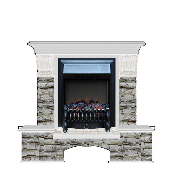 Glenrich (Гленрич) Бостон К (Fobos BL,BR) камень-Алтай/цвет-Белый — это уже готовый комплект камина, включающий облицованный камнем и шпоном портал, а также электротопку. Представленная модель оснащена удобной функцией обогрева, при этом ее поверхность не нагревается до больших температур, что исключает возможность получения ожога.