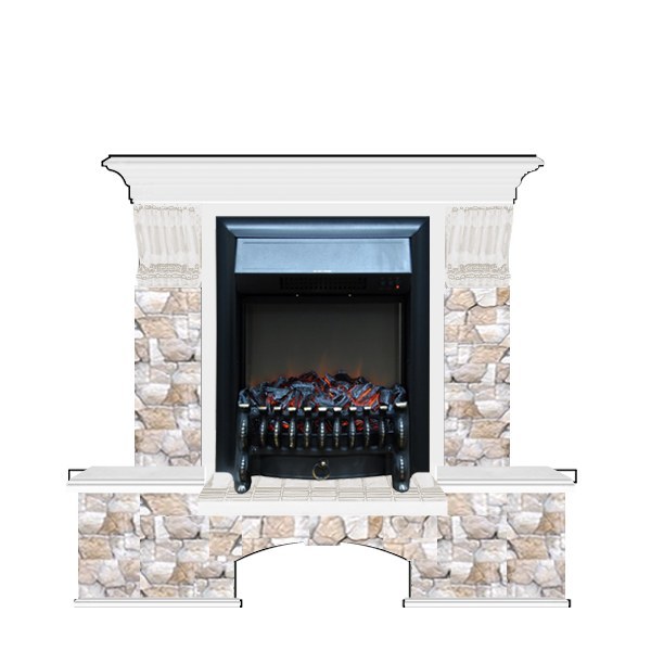 Glenrich (Гленрич) Бостон К (Fobos BL,BR) камень-Арбат/цвет-Белый — это уже готовый комплект камина, включающий облицованный камнем и шпоном портал, а также электротопку. Представленная модель оснащена удобной функцией обогрева, при этом ее поверхность не нагревается до больших температур, что исключает возможность получения ожога.