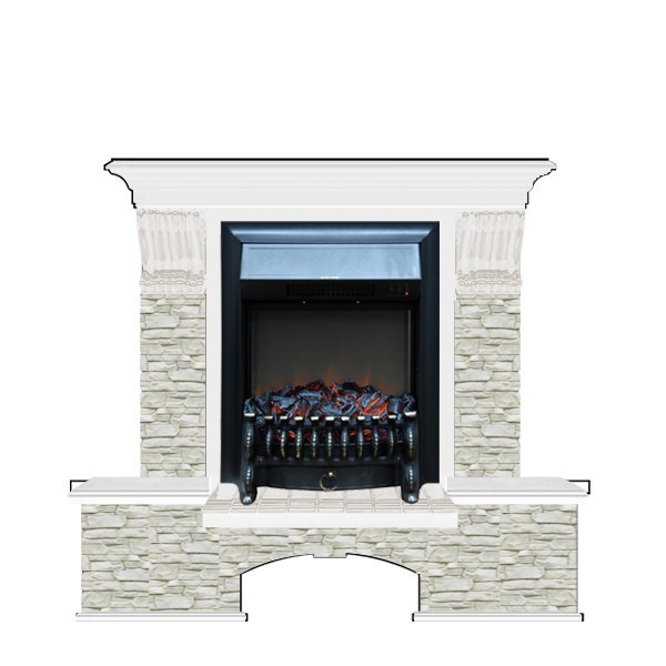 Glenrich (Гленрич) Бостон К (Fobos BL,BR) камень-Грот однотонный/цвет-Белый — это уже готовый комплект камина, включающий облицованный камнем и шпоном портал, а также электротопку. Представленная модель оснащена удобной функцией обогрева, при этом ее поверхность не нагревается до больших температур, что исключает возможность получения ожога.