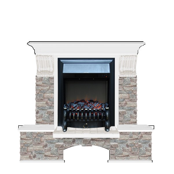 Glenrich (Гленрич) Бостон К (Fobos BL,BR) камень-Грот цветной/цвет-Белый — это уже готовый комплект камина, включающий облицованный камнем и шпоном портал, а также электротопку. Представленная модель оснащена удобной функцией обогрева, при этом ее поверхность не нагревается до больших температур, что исключает возможность получения ожога.