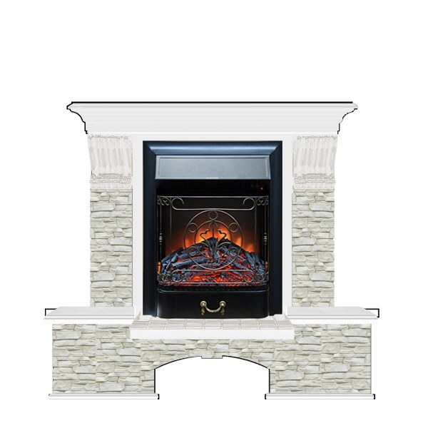 Glenrich (Гленрич) Бостон К (Magestics BL,BR) камень-Грот однотонный/цвет-Белый — это уже готовый комплект камина, включающий облицованный камнем и шпоном портал, а также электротопку. Представленная модель оснащена удобной функцией обогрева, при этом ее поверхность не нагревается до больших температур, что исключает возможность получения ожога.