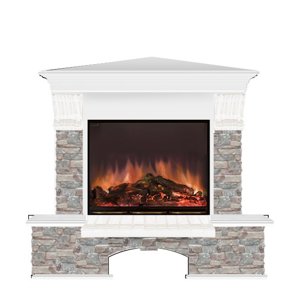 Комплект современного электрокамина Glenrich (Гленрич) Бостон угловой (Arte 23) камень-Грот цветной/цвет-Белый имеет специальное исполнение для компактного размещения в углу комнаты. Модель красива и функциональна: дизайн ее обязательно покорит ценителей прекрасного, а возможность обогрева сделает прибор дополнительным источником тепла в комнате.