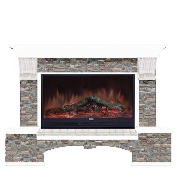 Glenrich (Гленрич) Бостон 86 (Premier S86) камень-Грот цветной/цвет-Белый — это красивый каминокомплект от российского бренда. Модель укомплектована широким электроочагом и пультом для управления рабочими параметрами. Дизайн камина не оставит равнодушным ценителей классики, так как сочетает в себе деревянные фактуры, каменную облицовку и благородные оттенки.