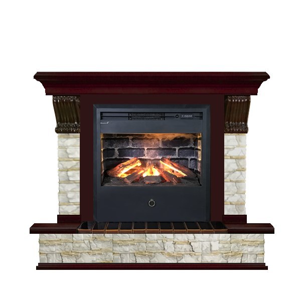 Glenrich (Гленрич) Панорама Samba 3D камень-Алтай/цвет-Красное дерево представляет собой современную модель камина, который работает от электросети. Удобное использование прибора достигается благодаря наличию пульта для дистанционного управления рабочими параметрами. Конструкция включает в себя облицованный камнем портал и очаг с объемным эффектом пламени.