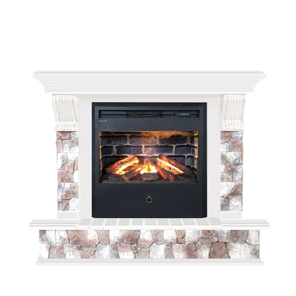 Glenrich (Гленрич) Панорама Samba 3D камень-Арбат/цвет-Белый представляет собой современную модель камина, который работает от электросети. Удобное использование прибора достигается благодаря наличию пульта для дистанционного управления рабочими параметрами. Конструкция включает в себя облицованный камнем портал и очаг с объемным эффектом пламени.