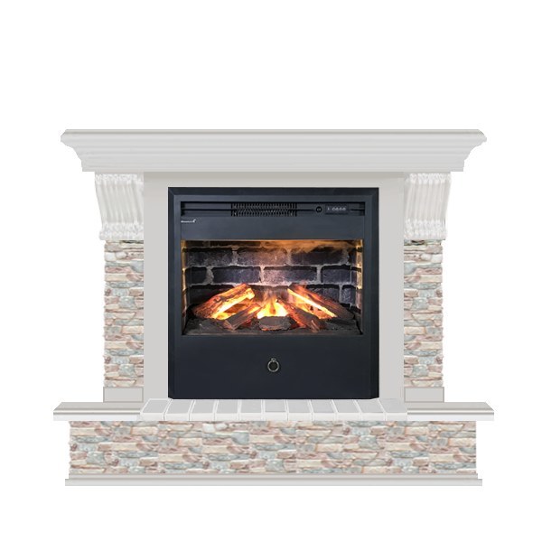 Glenrich (Гленрич) Панорама Samba 3D камень-Грот цветной/цвет-Беленный дуб представляет собой современную модель камина, который работает от электросети. Удобное использование прибора достигается благодаря наличию пульта для дистанционного управления рабочими параметрами. Конструкция включает в себя облицованный камнем портал и очаг с объемным эффектом пламени.