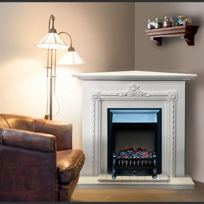 Модель электрического камина Glenrich (Гленрич) Шервуд угловой (Fobos black) Белый отличается элегантным утонченным дизайном и, благодаря тому, что монтируется в углу, станет превосходным функциональным украшением для любой комнаты. Конструкция состоит из долговечного портала и современной топки, которая обогревает пространство и одновременно проецирует образ огня.