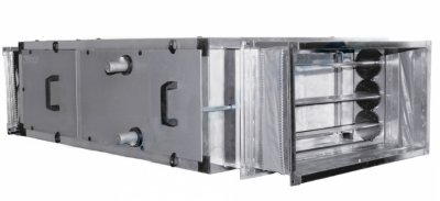 - Прямоточная схема расположения вентиляторов позволяет получить высокие аэродинамические характеристики установок;