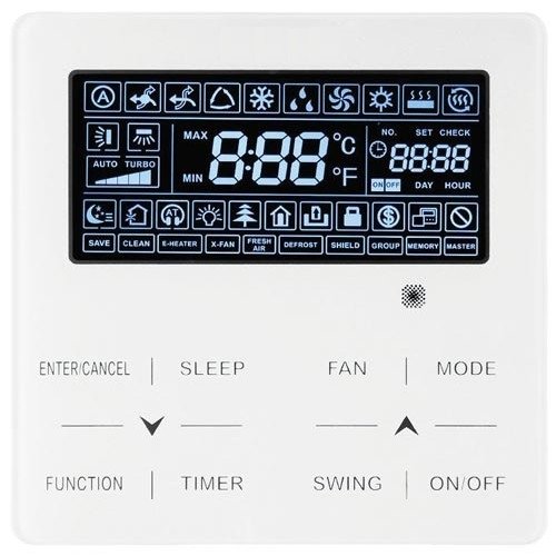 Goldstar (Голдстар) XK46 представляет собой проводной пульт управления, который может быть подключен к любому внутреннему блоку мультизональной системы кондиционирования производства компании Голдстар. Данный пульт выполнен в ультрасовременном дизайне и имеет невероятно удобную сенсорную панель управления. На широком жидкокристаллическом дисплее с подсветкой отображается вся информация о работе обслуживаемого оборудования – все заданные настройки внутреннего блока и доступные режимы и функции. Компактные размеры корпуса позволяют данный пульт аккуратно вписать в любой интерьер, сделав его на стене практически незаметным.