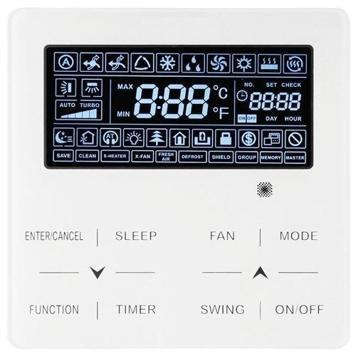 Модель проводного пульта управления Goldstar (Голдстар) XK55 идеально подходит ко всем моделям внутренних блоков VRF-систем, представленных этим же производителем. Подключив этот пульт ко внутреннему блоку, пользователь сможет управлять всеми функциями, которые доступны в конкретной модели климатического оборудования – тепло- и холодопроизводительностью, скоростью вращения вентилятора, положения жалюзи, а также настраивать таймер и т.д. Устройство имеет удобную панель управления с жидкокристаллическим дисплеем, на котором выводится все данные о работе внутреннего блока, в том числе и информация о произошедших сбоях.