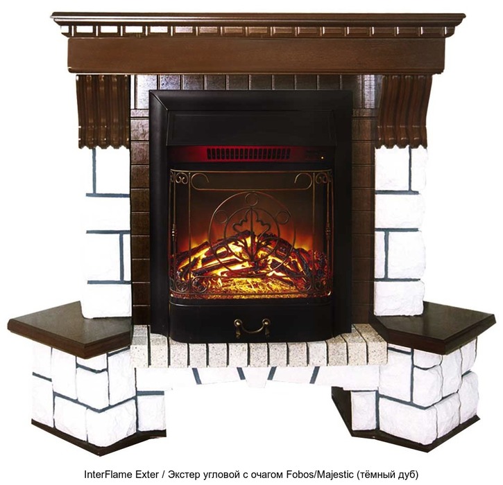 Электрический камин InterFlame (ИнтерФлейм) Exter / Экстер угловой с очагом Fobos/Majestic отличается приятным классическим дизайном, что, обязательно, подчеркнет хороший вкус владельца. Данная модель представлена в большом количестве цветовых вариаций, чтобы максимально точно слиться с интерьером любого помещения. Камин предназначен для размещения в углу комнаты.