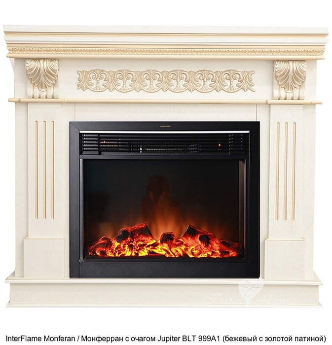 Каминокомплект InterFlame (ИнтерФлейм) Monferan / Монферран с очагом Jupiter FX M Brass/Black – это превосходная модель, в которой отлично сочетаются стильный дизайн и современный очаг. Электротопка данного комплекта способна стать не только декоративным украшением и забавлять эффектным мерцанием пламени, но и выполнять функцию обогревателя. Сделано России.