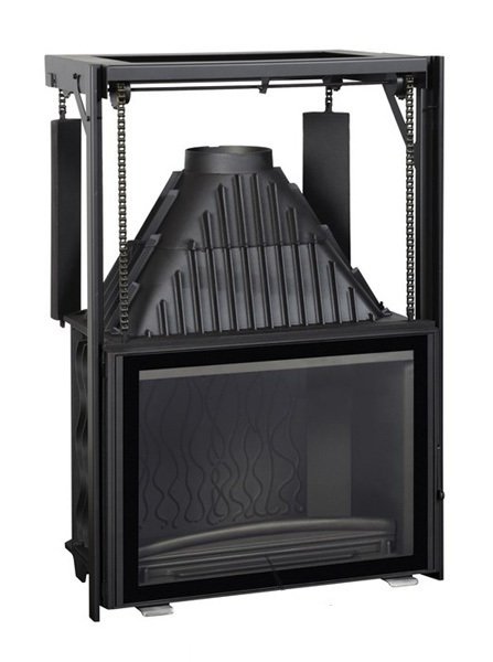 Подъемный механизм с контргрузом обеспечивает плавное поднятие дверцы камина при открывании – это добавляет шарма камину и экономит пространство перед ним.