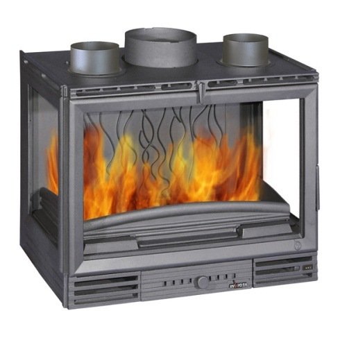 Огнеупорные стекла на дверце камина и боковых окнах выдерживают нагрев до 750 С.