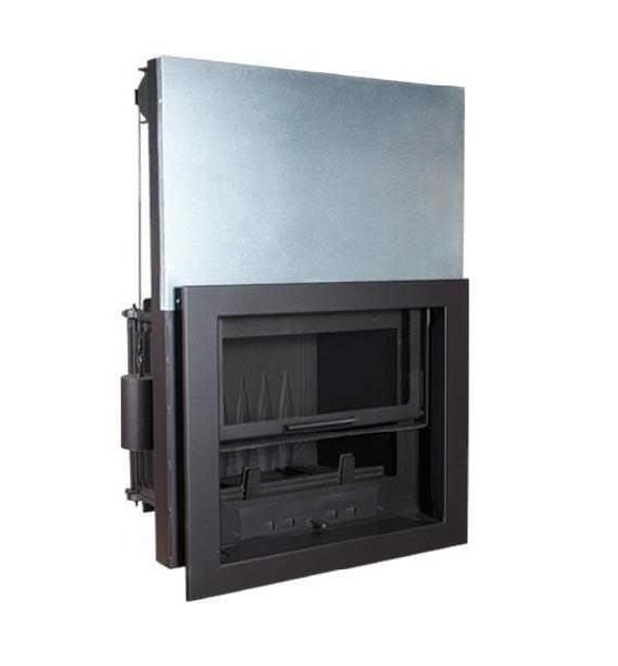 Каминная топка ANTEK G(гильотина) – топка с вертикальным подъемом стекла от польского производителя KRATKI. Топки с таким механизмом подъема сегодня очень популярны, их называют топки-гильотины или «топки с лифтом». Данный вид топки предназначен для встраивания или скрытого монтажа, поэтому дверцу в поднятом состоянии не видно, в этом случае получается традиционный открытый камин. В остальном – это каминная топка, которая имеет все характеристики данной серии – корпус из чугуна, подключается к дымоходу сверху.