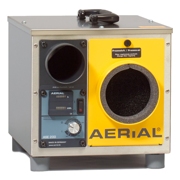 Осушитель адсорбционный Master (Мастер) ASE200 может быть размещен в том месте, где его положение наиболее оптимально для выполнения процедуры осушения воздуха в помещении. Радиальный вентилятор регулирует движение потоков воздуха к ротору. За уровнем влажности в помещении, для последующего проведения настроек, позволяет следить встроенный гигростат.