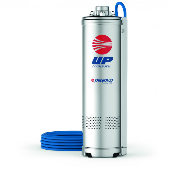 Pedrollo (Педролло) UP 2/4 20 м кабеля, являясь погружным, трёхфазным электронасосом, имеет четыре рабочих колеса, позволяя более тихую и быструю перекачку воды. Электродвигатель оснащён изоляцией F класса, степенью защиты IPX8. Детали, узлы и соединения устройства изготовлены из высококачественной стали прецизионного литья AISI 304. Всё это позволяет длительную эксплуатацию, надёжность и долговечность данного устройства.