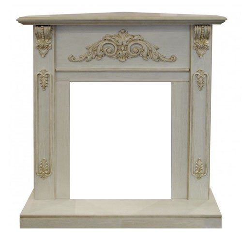 Real-Flame (Реал Флейм) Anita corner WTG портал под очаги Rimini, Fobos, Majestic, Eugene. Классическое приятное оформление портала с пристенной установкой в углу помещения. Применяются только качественные материалы МДФ и шпон под белый дуб. Портал сразу привлекает внимание, реализован в классическом стиле, украшен узорами с цветной отделкой по верху в центре и по бокам.