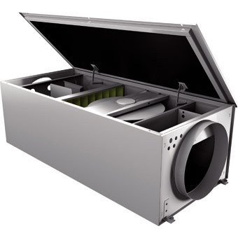 Все составляющие компоненты этой приточной установки размещены в корпусе, изготовленном из оцинкованной стали. Изнутри корпус надежно защищен двадцатимиллиметровым изоляционным слоем из минеральной ваты. Перфорированная внутренняя поверхность корпуса в комплексе со слоем изоляции повышает энергоэффективность оборудования, понижая тепловые потери, и обеспечивает эффективную защиту от шума при работе установки.