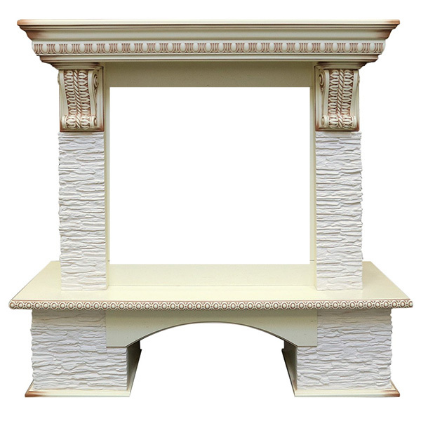 Портал для электрического камина Royal Flame (Роял Флейм) Pierre Luxe сланец мелкий белый под очаг Vision 23 LED FX Cлоновая кость с красной патиной отличается компактным размером и удобной для пристенного расположения формой. Элегантное оформительское решение привносит в облик камина нотку шика. Каменная облицовка эффективно сочетается с деревянными элементами.