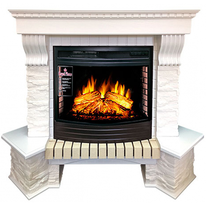 Электрический камин Royal Flame (РоялФлейм) Pierre Luxe угл сланец белый с очагом Dioramic 25 FX предназначен для угловой установки. Очаг отличается прочностью и качественной конструкцией. С помощью пульта дистанционного управления возможно менять множество регулировок и подсветок, а также функцию обогрева помещения.