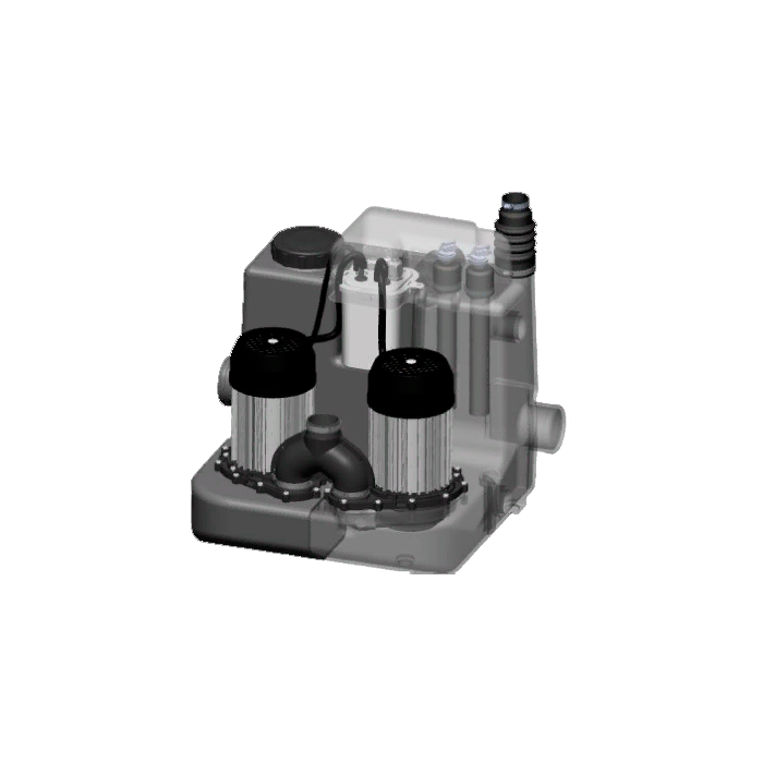 - SANICOM 2 — еще более мощный насос для откачивания грязных стоков. Оснащен двумя двигателями по 1500 Вт каждый. Подходит для использования в барах, ресторанах, кафе и прачечных.