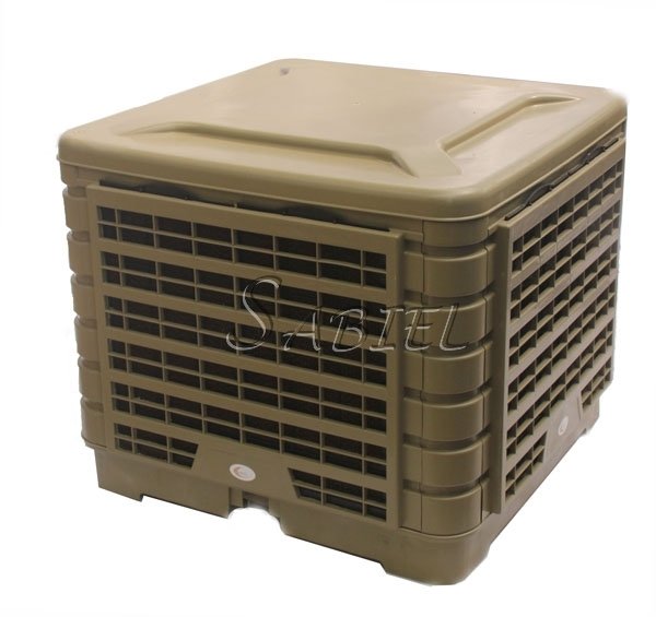 Sabiel D180AL оснащен нижней подачей, LED пультом, гигростатом. Гигростат обеспечивает данными о влажности, а LED пультом дополнительную возможность настройки и управления. Вентилятор для подачи воздуха состоит из 6 частей, выполненных из высокопрочного волокнистого пластика, все части могут быть повернуты под нужным углом. Водяной насос установлен для подачи воды к верхней части пластин, их увлажнения и обеспечения охлаждения.