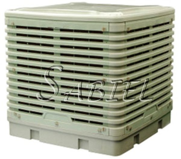 Sabiel D300A с нижней подачей. Для таких помещений, требующих мощной вентиляции и охлаждения, как маркеты, офисы, гостинницы, лечебные и учебные учреждения, вокзалы, рестораны, дискотеки. Плавная регулировка потока воздуха вентилятора. Конструкция лопастей вентилятора снижает шумовые эффекты при работе. Увлажненный воздух со сниженной температурой подается в помещение через раструб или воздуховод.