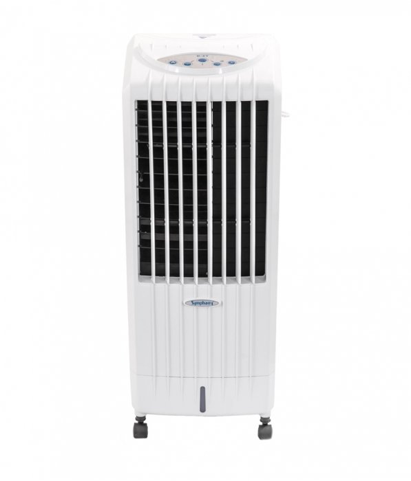 Мобильный кондиционер Symphony Diet 8i может самостоятельно и охладить, и увлажнить воздух в помещении, площадь которого не будет превышать 18 кв.м. Этот воздухоохладитель работает за счет охлаждающего эффекта при испарении воды. Как всем нам известно с уроков физики, когда происходит испарение влаги с какой-либо поверхности, на этот процесс затрачивается много тепла, поэтому и поверхность, с которой происходит испарение, и воздух охлаждаются. Встроенный вентилятор помогает распределить прохладный воздух по всему помещению, создавая мощный поток воздуха, рассеивающийся жалюзи по всей площади комнаты.