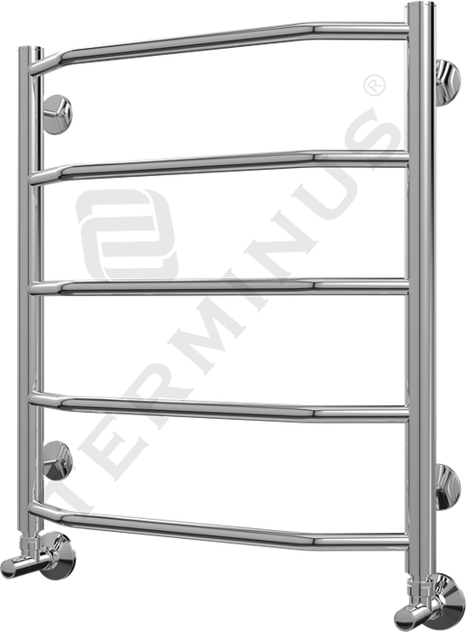 Водяной сушитель для полотенец Terminus (Терминус) Виктория П5 500*596 может быть подключен (нижнее направление) к уже существующим системам отопления или ГВС, что делает его экономным и просты в установке. Оборудование выполнено в классической форме лесенки, которая гарантирует ему высокую вместительность. Устройство представлено в стильном цвете и изготовлено из качественной стали.