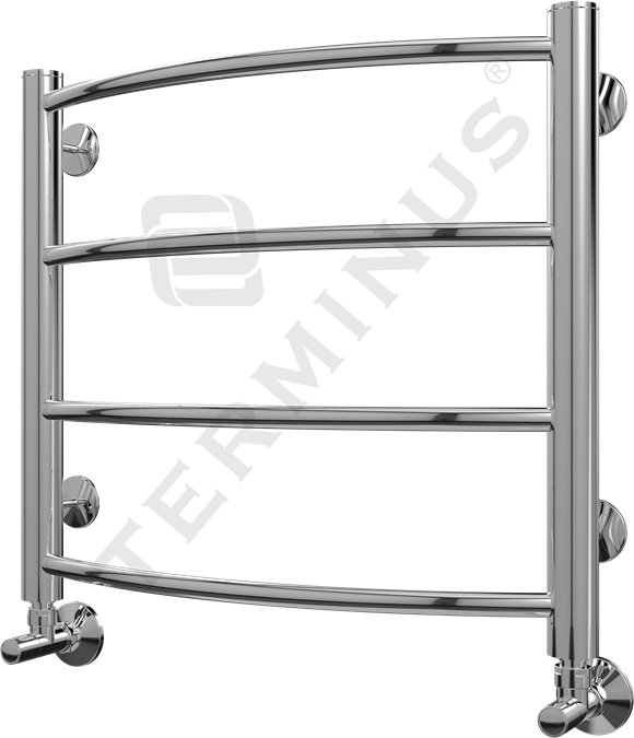Водяной сушитель для полотенец Terminus (Терминус) Классик П4 500*496 выполнен в эргономичной форме лесенки, которая обеспечивает ему простоту в монтаже и эксплуатации. Устройство может быть задействовано практически в каждом доме, ведь подключается к уже существующим системам отопления и ГВС. Оборудование укомплектовано несколькими перекладинами из нержавеющей стали, устойчивой к воздействию влаги.