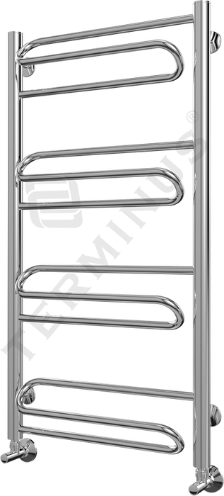 Водяной сушитель для полотенец Terminus (Терминус) Юпитер П12 500*996 оснащен стальными перекладинами, выполненными в необычной современной форме, поэтому прекрасно вписывается в интерьер ванной комнаты квартиры или дома. Оборудование изготовлено из нержавеющей стали, которая гарантирует ему высокую теплопроводимость и устойчивость к процессу коррозии.