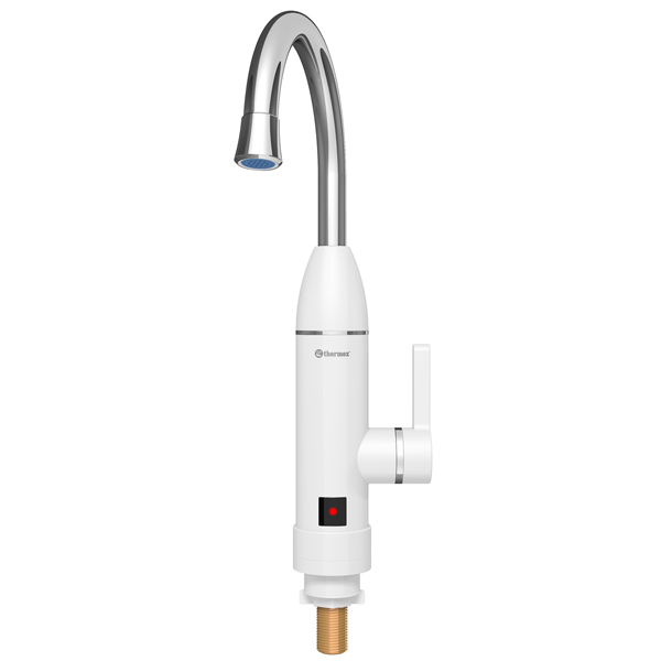 THERMEX (Термекс) Hotty 3000 представляет собой проточный водонагреватель, который устанавливается вместо обычного кухонного смесителя. Установленный у основания световой индикатор отображает режим работы смесителя-водонагревателя. Благодаря современному лаконичному дизайну данная модель будет прекрасно смотреться в кухне с любым интерьером.
