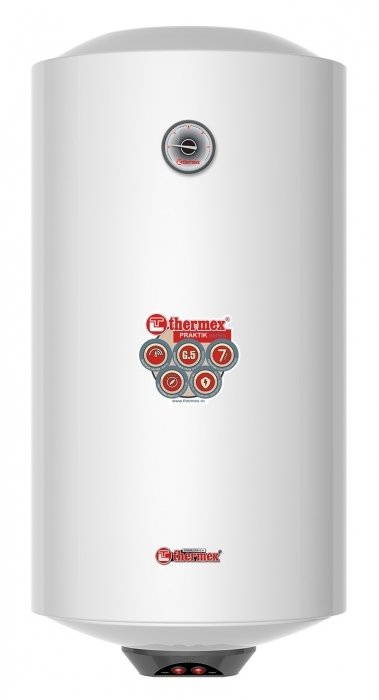 Передовые водонагреватели электрического типа Praktik от компании Thermex представлены накопительными устройствами объемом 30-150 литров. Модели этого семейства характеризуются круглой традиционной формой бака, качественным исполнением из первоклассного материала, надежной герметичной конструкцией. Для управления приборами предусмотрены механические переключатели.