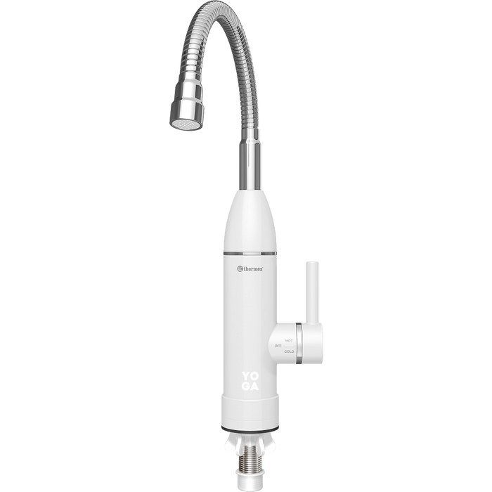 Водонагреватель - смеситель Thermex (Термекс) Yoga 3000 представляет собой кран с гибкий изливом, может использоваться как смеситель на кухне или в ванной комнате. Устройство оборудовано электрическим ТЭНом мощностью 3000 Вт, который быстро и качественно нагревает воду. В передней части корпуса расположен дисплей, показывающий температуру воды.