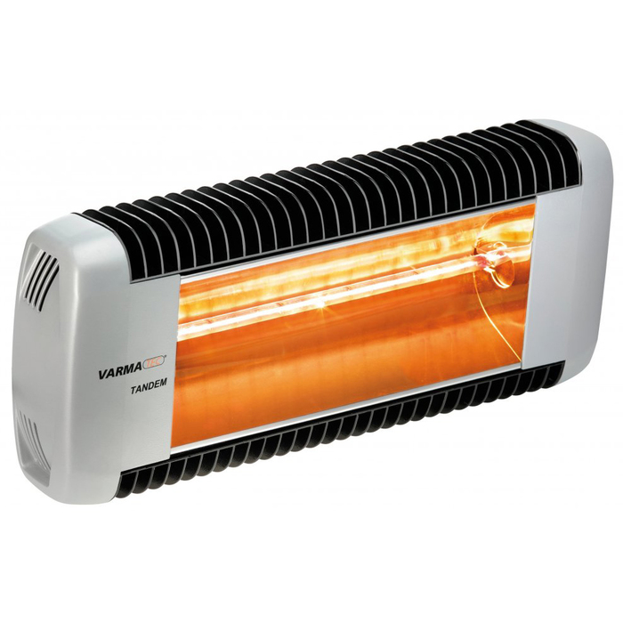 Varma (Варма) TANDEM представляет собой инфракрасный обогреватель, корпус которого полностью защищен от дождя и мелкой пыли, благодаря чему данный прибор может использоваться для обогрева даже открытых площадок. Модель укомплектована 1,5-метровым электрическим проводом и монтажным кронштейном, при помощи которого обогреватель может быть установлен на потолок или стену.