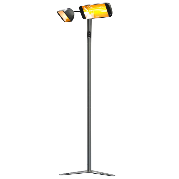 Varma (Варма) TOWER – это надежный и простой в эксплуатации инфракрасный обогреватель, который отлично подойдет для обогрева больших помещений и наружных пространств, хорошо защищенных от дождя. В комплект поставки входит мобильная напольная подставка, два инфракрасных обогревателя со съемными защитными решетками, два шестиметровых электрических провода с вилкой и выключателями для совместного и раздельного включения обогревателей, а также устройство автоматического выключения ламп при падении или наклоне (TILT).