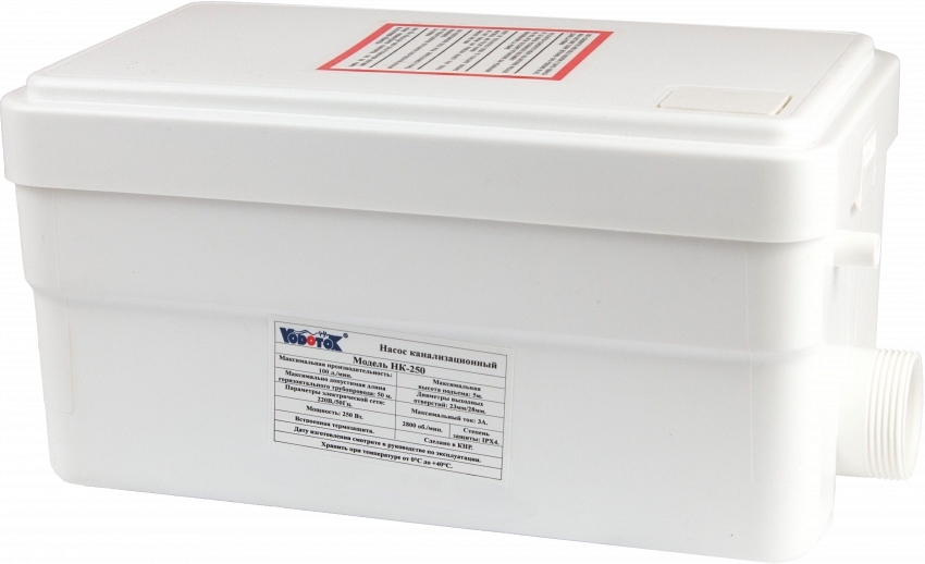 Канализационный насос Vodotok (Водоток) НК-250 устанавливается там, где есть необходимость в перекачке сточных вод, например, от ванной, биде и прочее. В устройстве используется надежный двигатель, который оснащен термозащитой, которая отключает его в случае перегрева, блокировки и перегрузки по току. Прибор не прихотлив в обслуживании.