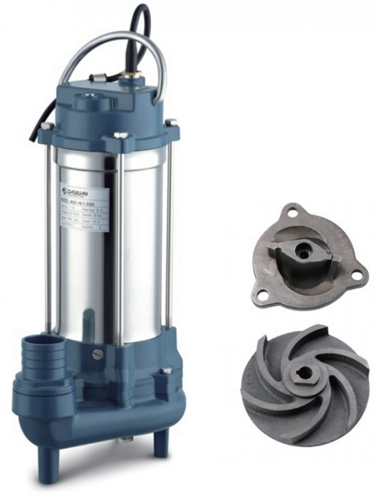 - Отрытое центробежное рабочее колесо на удлиненном валу мотора увеличивает свободный проход через насос для инородных механических загрязнений.