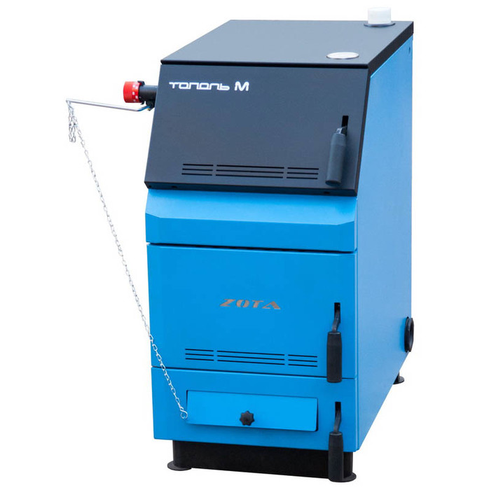Zota (Зота) Тополь-М 80 представляет собой модель комбинированного отопительного котла, предназначенного для создания в большом помещении эффективной системы отопления. В качестве топлива может использоваться уголь, дрова, пеллеты, а также, оснастив оборудование газовой горелкой, газ. При необходимости на котел могут быть установлены ТЭНы – в конструкции прибора предусмотрены специальные резьбовые выходы.