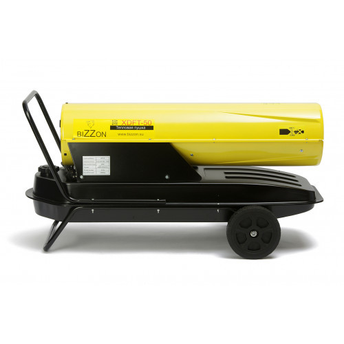 biZZon (биZZон) XDFT-50 – тепловая пушка прямого нагрева, конструкция которой оборудована колесами и удобной ручкой для свободного перемещения между объектами, требующими ее работы. Модель работает на дизельном топливе, предназначена для обслуживания нежилых помещений. Предусмотрена установка таймера на отключение.